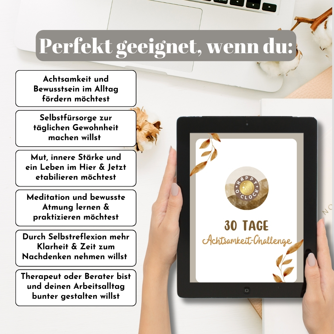 - 30 Tage Achtsamkeit Challenge mit täglichen, kleinen Übungen