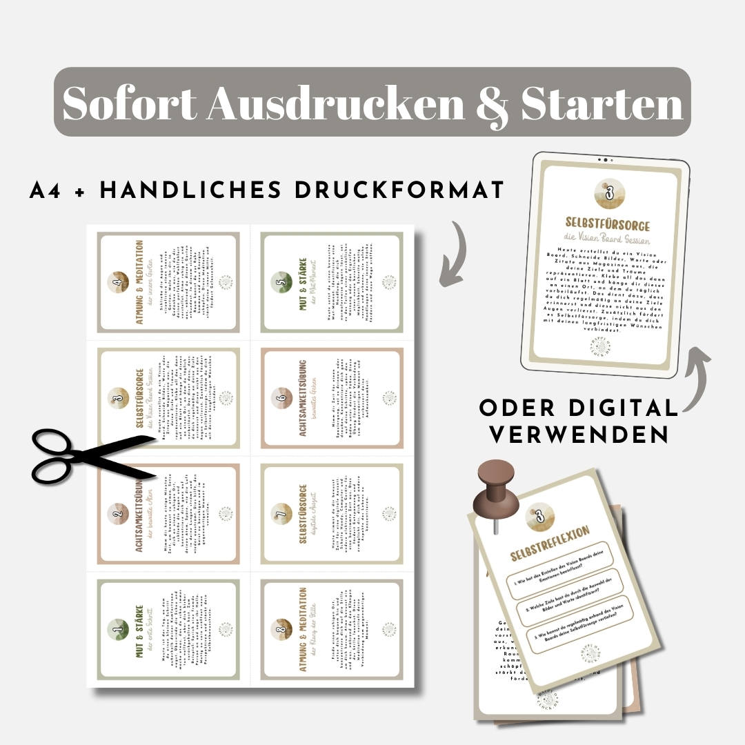 Einfache und leicht herunterladbare PDF Dateien für deine psychische Gesundheit. Es werden keine physischen Artikel versandt.