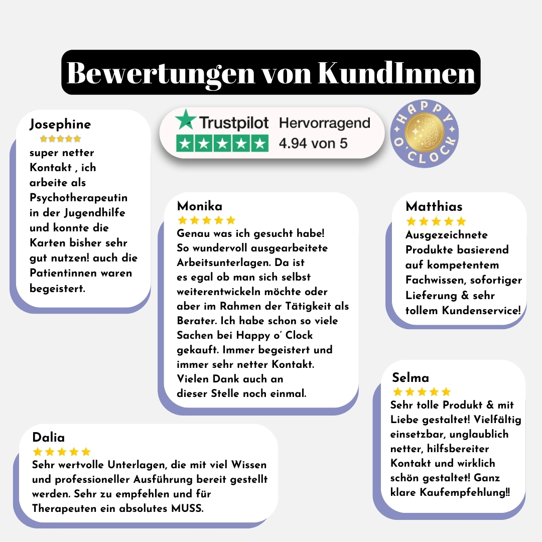 Einfache und leicht herunterladbare PDF Dateien zur Unterstützung deines Therapie- und Beratungsalltages. Es werden keine physischen Artikel versandt.